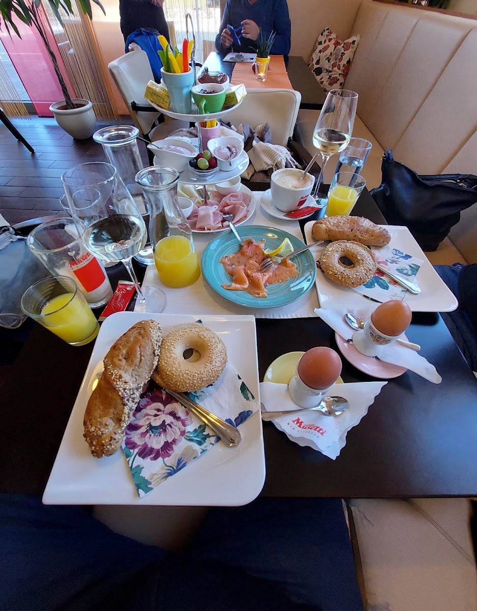 Sehr einfaches und preislich gutes Frühstückslokal. Beim Frühstück darf man sich nichts großartiges erwarten. Es war sehr nett hergerichtet und hat gut geschmeckt nachdem der Preis sehr günstig ist is das ok. Der Kaffe ist auch ok mit einem Glas Wasser und einen kleinen Keks hergerichtet. Personal ist sehr nett und schnell. Sanitäranlagen sind auch sauber und Hygienisch(Pluspunkt für mich ist auch der Desinfektionspeder um die Klobrille zu reinigen) Kein besonders Ambiente aber ok. Interessant ist auch dass das "Schmankerl" Frühstück 2x billiger ist als das Frühstück zu zweit ohne Sekt. Es wird das selbe serviert. Dieses Cafe kann man weiter empfehlen wenn man einfach, billig und schnell frühstücken will.