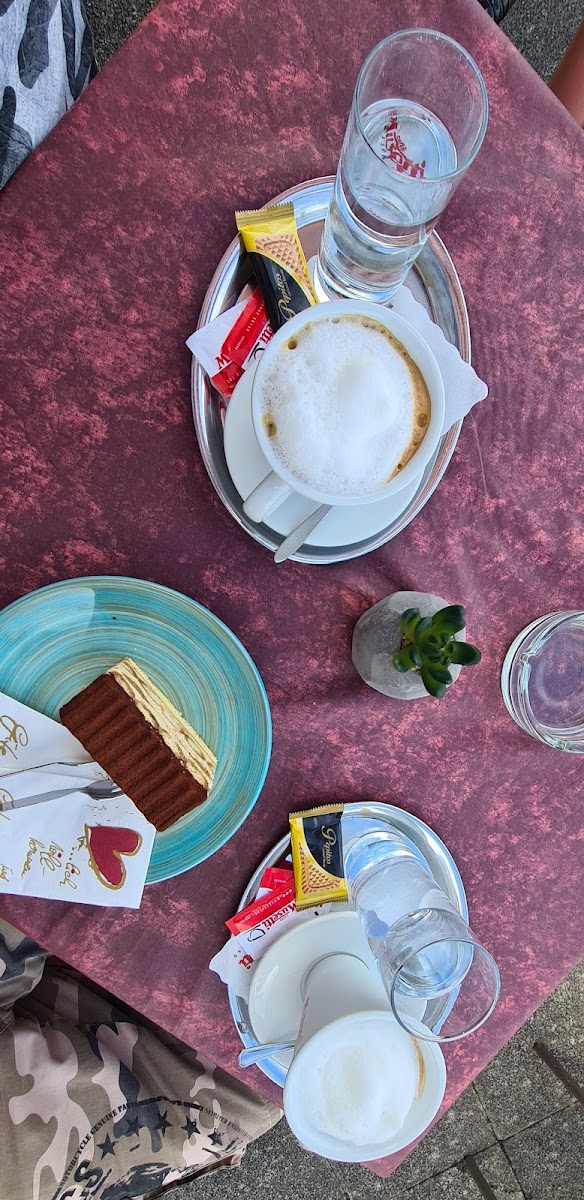 Customer reviews consistently reflect a high satisfaction level, praising the generous portion sizes and affordable prices. “Super geschmackvoll hergerichtet, viel Auswahl,” says K. D., expressing delight in both the flavor and presentation of the food. And it's hard to resist the coffee, which comes beautifully served with a glass of water and a little treat, as noted by Jakob Schwaiger, enhancing the whole cafe experience.